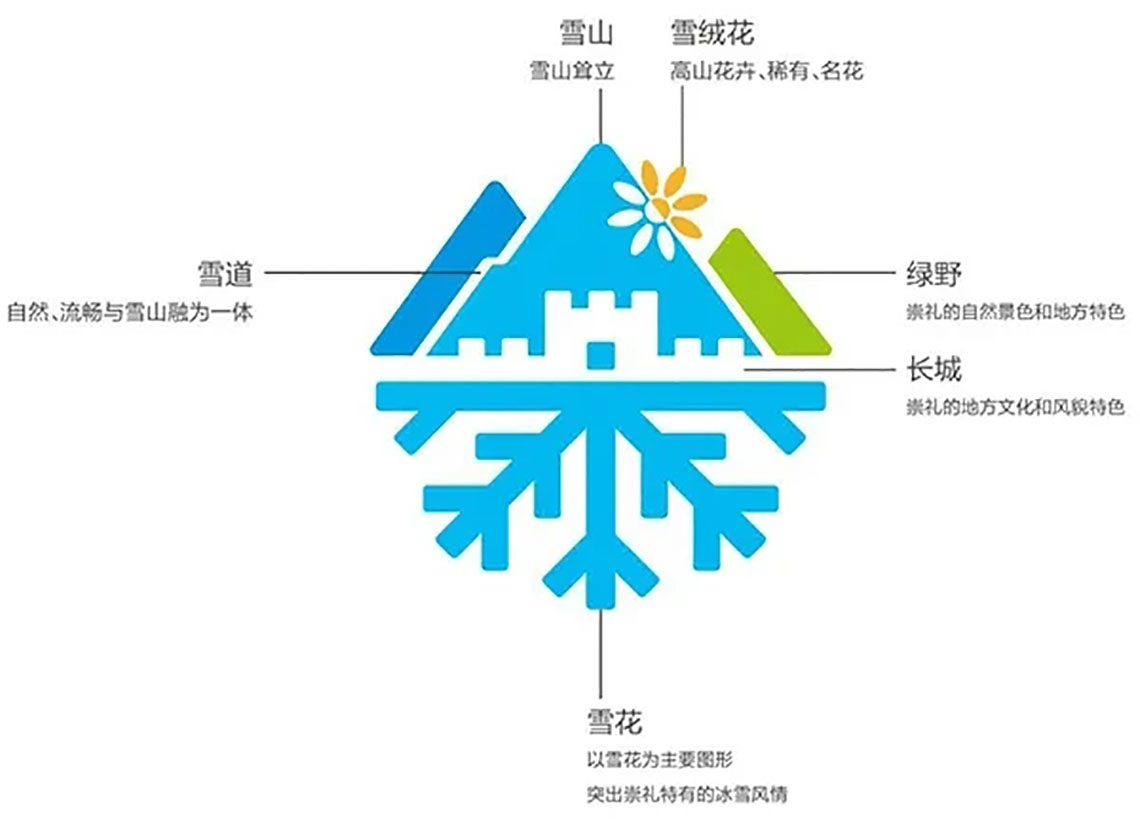 表达了立足冰雪全力发展崇礼的决心,用标识诠释四季,给人新鲜和年轻之感。